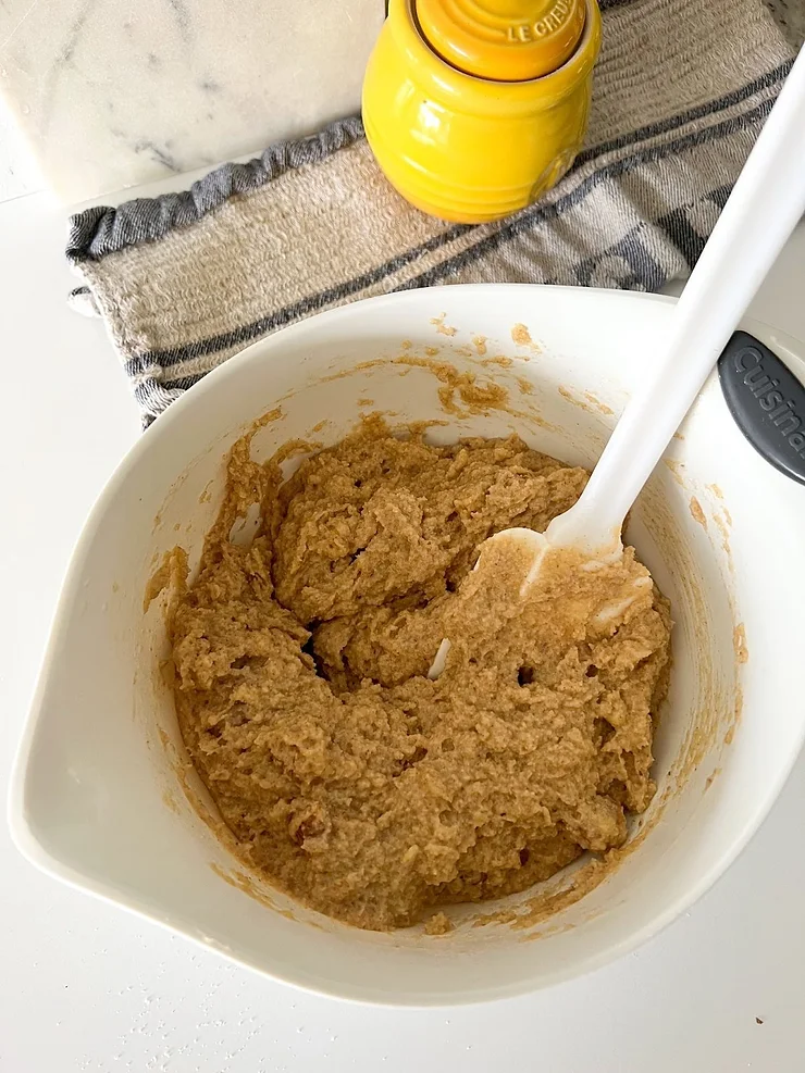 - In a bowl, combine the wet ingredients with the date caramel, mixing until well combined.